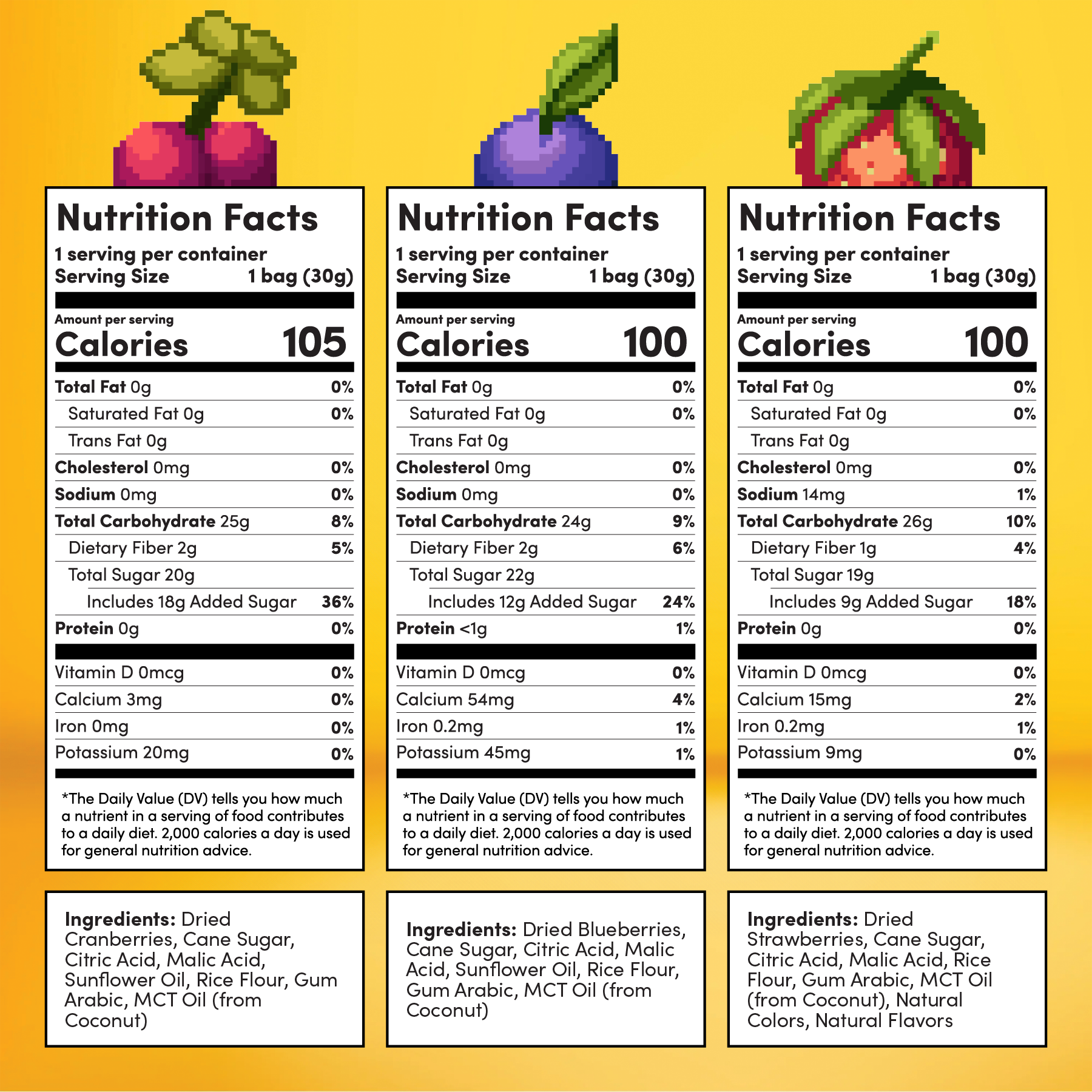 Each bite starts with chewy, real dried fruit and then slams you with a custom sour coating that ramps up in intensity the deeper you go