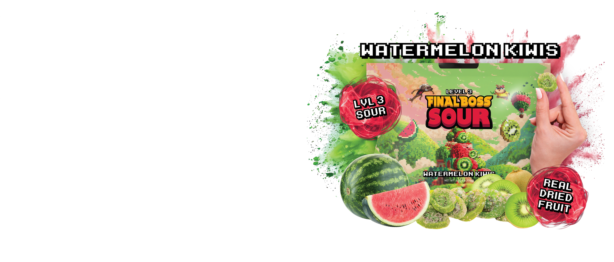 Each bite starts with chewy, real dried fruit and then slams you with a custom sour coating that ramps up in intensity the deeper you go.